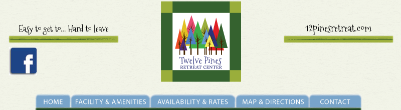 Twelve Pines Retreat Center is a crafting and quilting retreat facility. We rent the Center to groups for their own crafting retreats and offer  quilting class retreats that are open to the public several times a year.